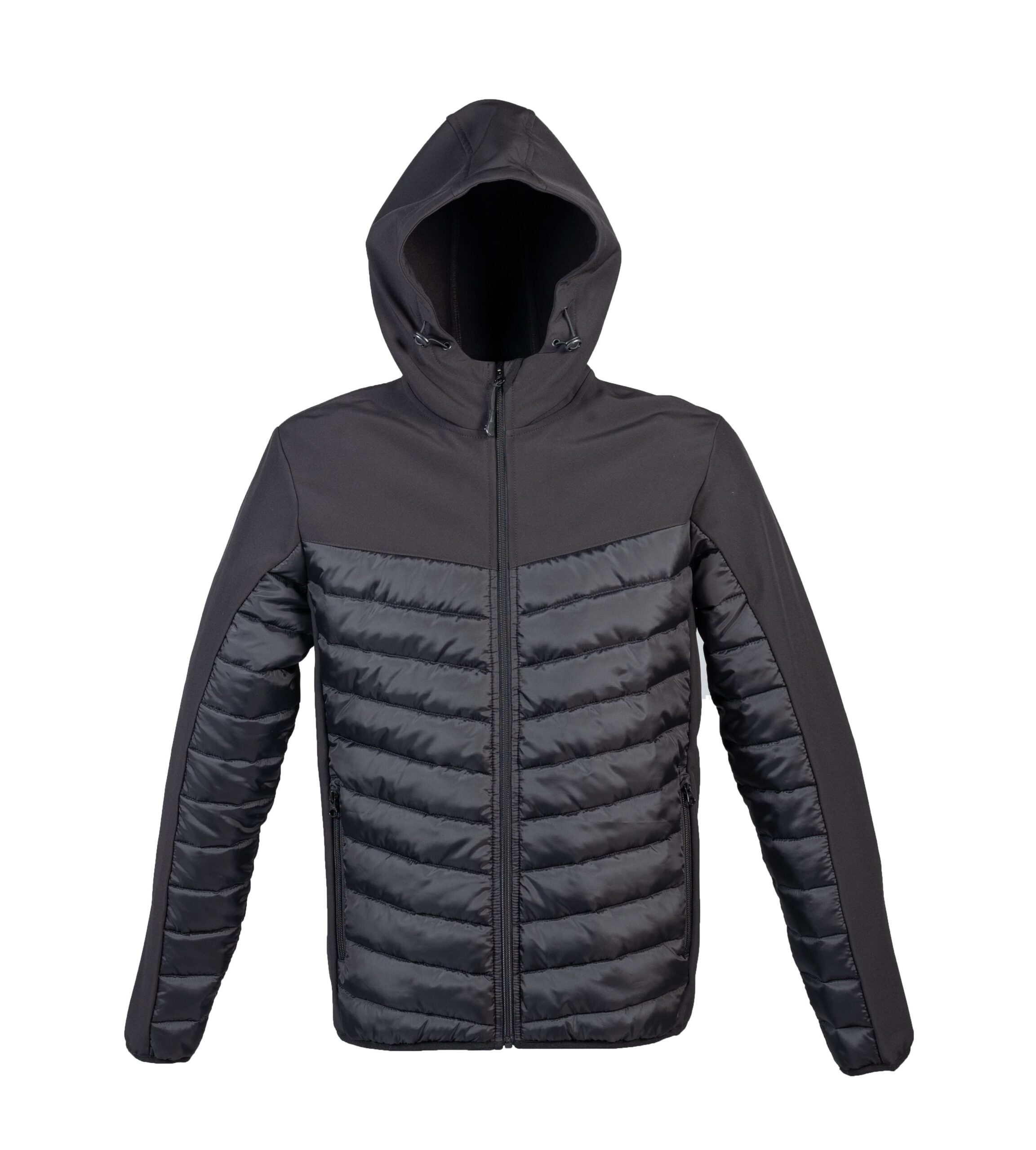 – Cappuccio imbottito con bordatura in tessuto elastico