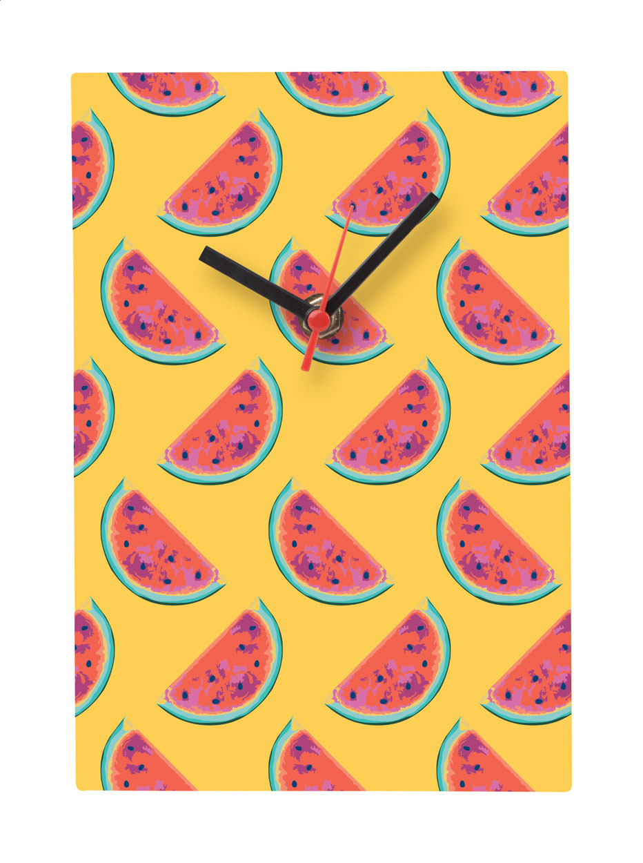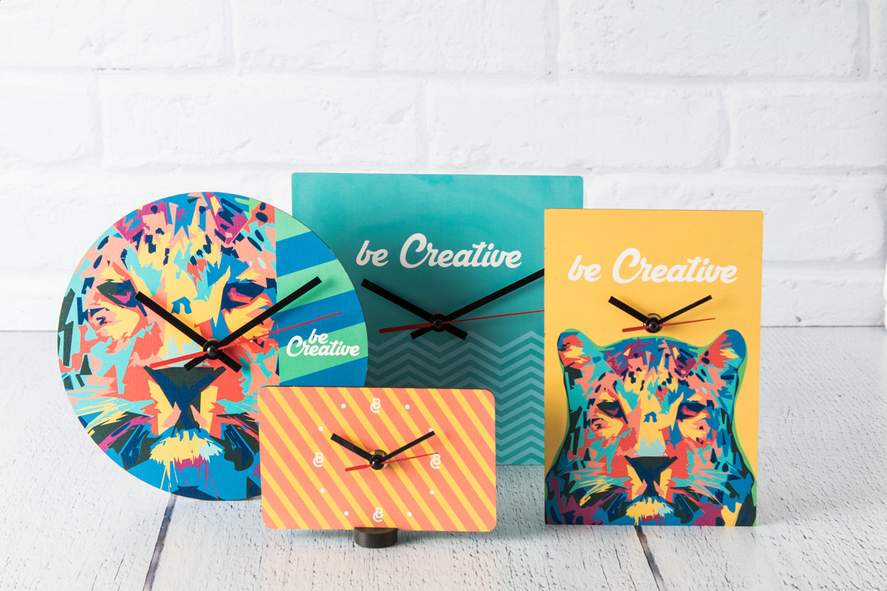 Orologio da parete di forma rettangolare in legno HDF con grafica personalizzata. Funziona con 1 batteria AA, non fornita. MOQ: 50 pz.