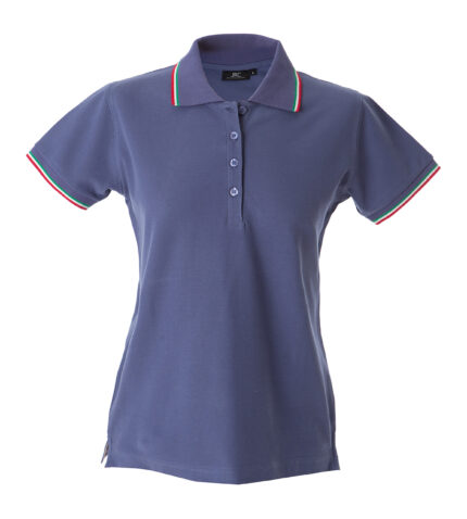 – Doppio piping tricolore su colletto e fondo manica in rib